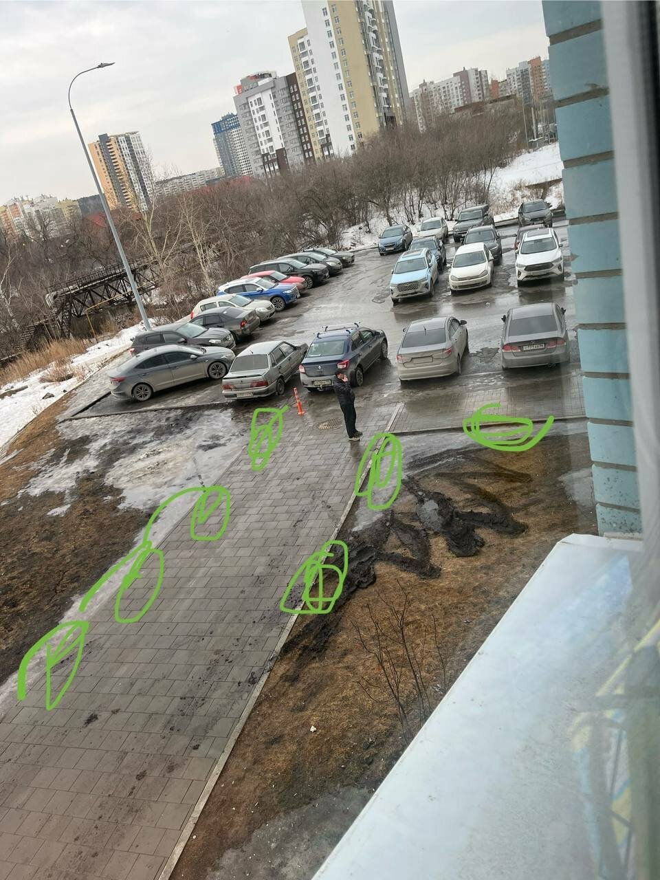 - Водители фургонов ездят по газону и растаскивают землю по плитке.