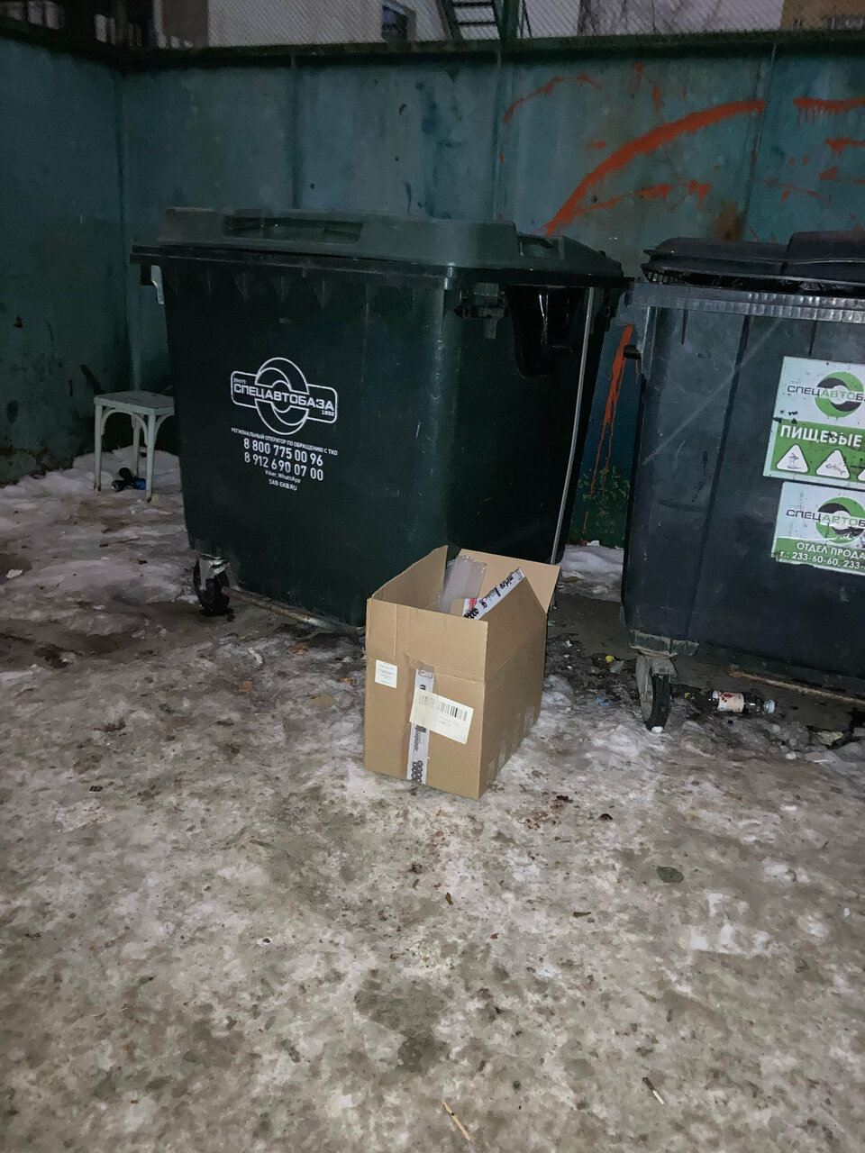 - Сотрудники оставляют коробки возле контейнеров, игнорируя специальное место для мусора.