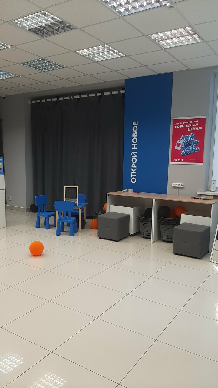 В пункте выдачи Ozon клиенты могут проверить товар под камерой, примерить его в специально оборудованной примерочной, а также получить консультацию от квалифицированных сотрудников. Здесь можно не только забрать заказ, но и оформить возврат в случае брака или при наличии гарантийных обязательств продавца.