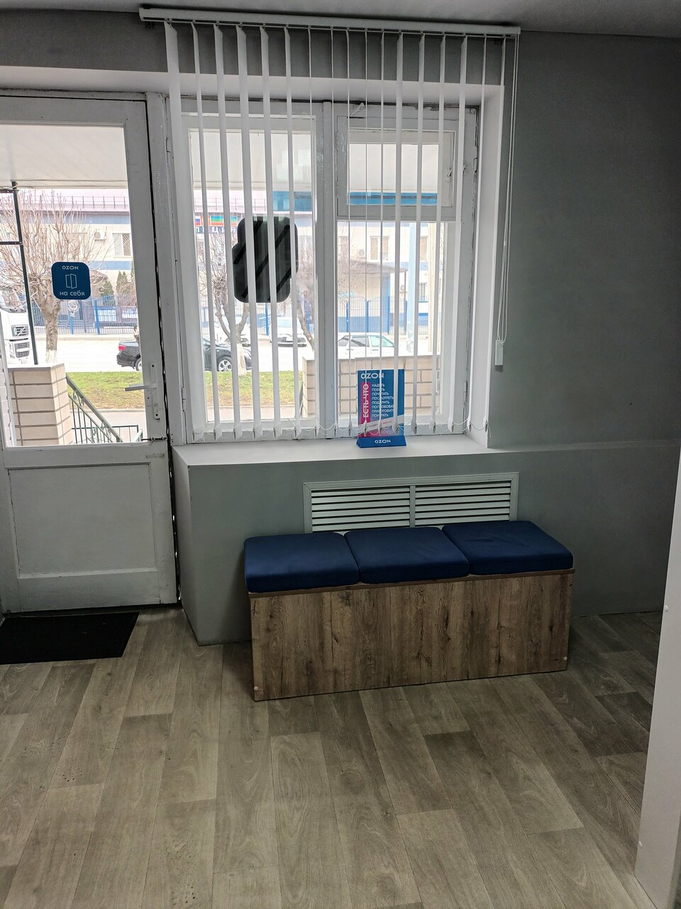 Чистое, аккуратно место, легко узнаваемый логотип озон. Удобный подъезд.
