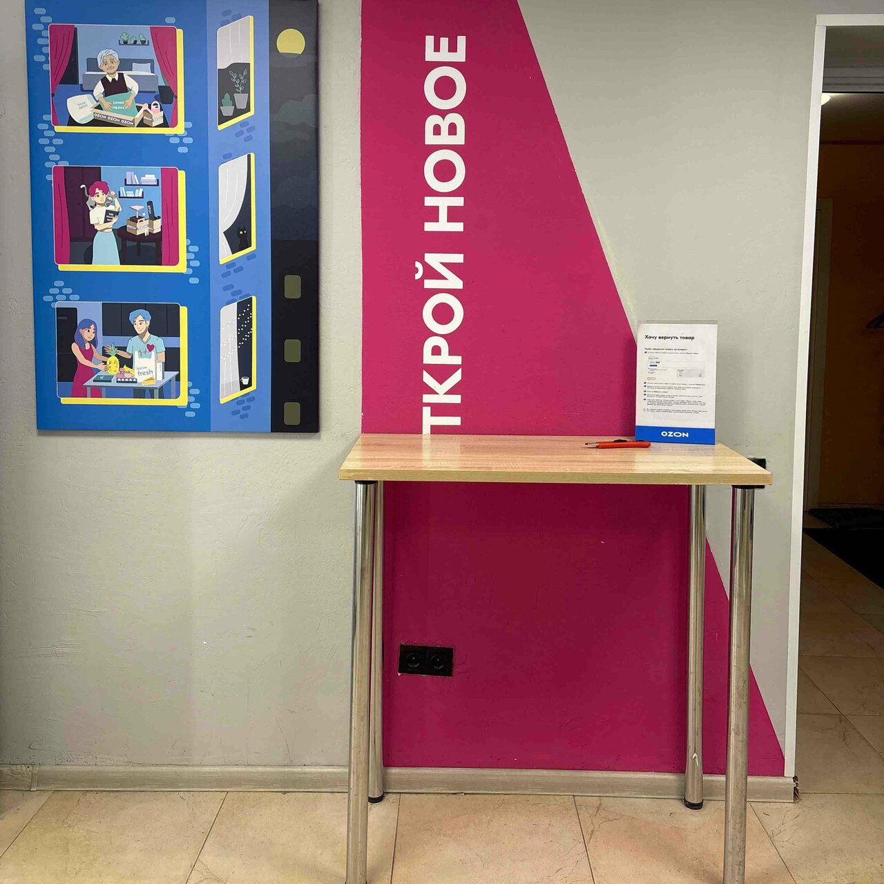 В пункте выдачи Ozon клиенты могут проверить товар под камерой, примерить его в специально оборудованной примерочной, а также получить консультацию от квалифицированных сотрудников. Здесь можно не только забрать заказ, но и оформить возврат в случае брака или при наличии гарантийных обязательств продавца.