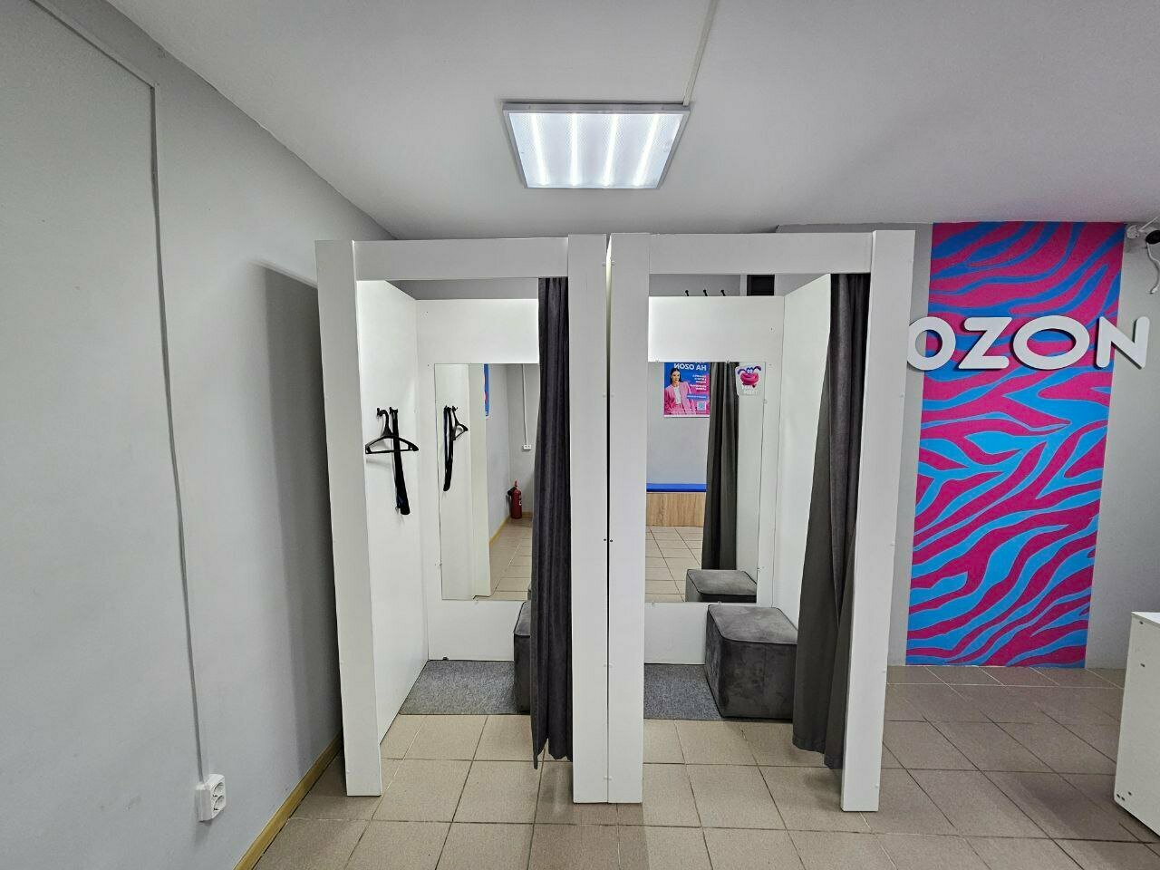 Пункт выдачи, как пункт выдачи. Нареканий нет. Есть примерочные. Мне там помогли оформить карту ‘Ozon ‘. И если возникают какие-то вопросы, сотрудники отвечают вежливо, дают максимальную информацию, в своей компетенции.