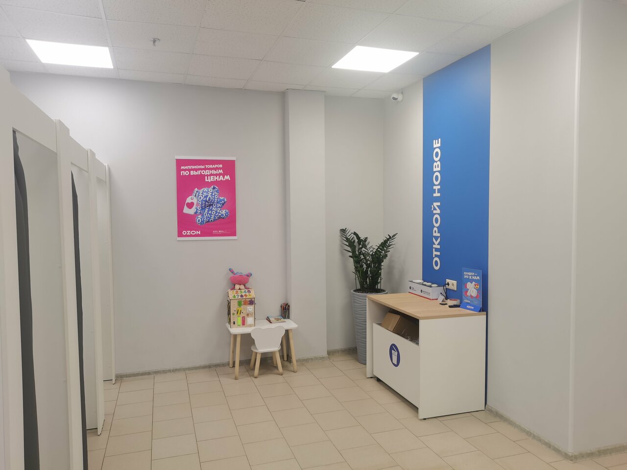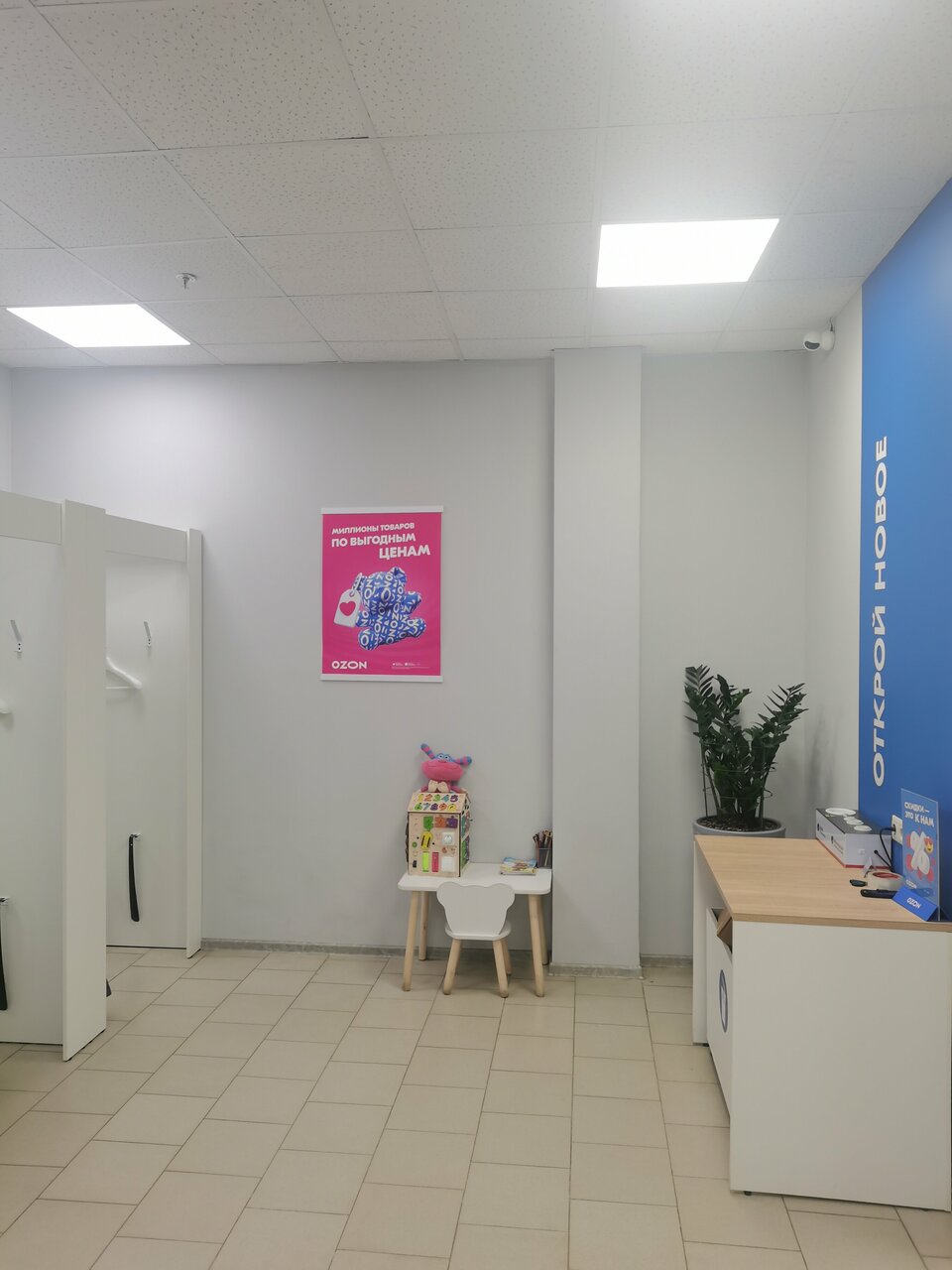 Лучший пункт выдачи заказов OZON, в котором приходилось бывать! Очень просторное, светлое и чистое помещение. Всегда порядок, есть детский уголок с раскрасками, бизибордом и бонусом — вазочка с конфетками для посетителей! Есть также кулер с водой. Быстрое обслуживание и всегда лучезарный Ярослав (с коллегами), который своей улыбкой поднимет настроение, а рядовой поход в ПВЗ станет сильно приятнее! Спасибо за работу!