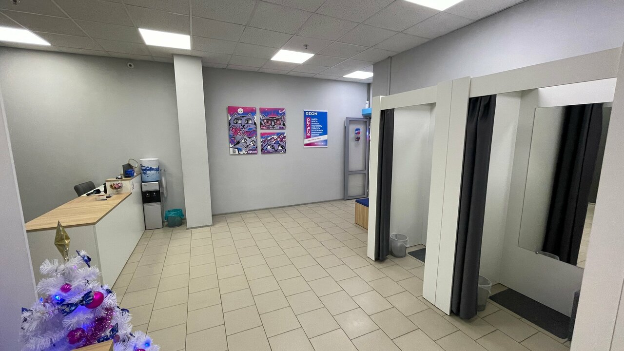 В пункте выдачи Ozon клиенты могут проверить товар под камерой, примерить его в специально оборудованной примерочной, а также получить консультацию от квалифицированных сотрудников. Здесь можно не только забрать заказ, но и оформить возврат в случае брака или при наличии гарантийных обязательств продавца.