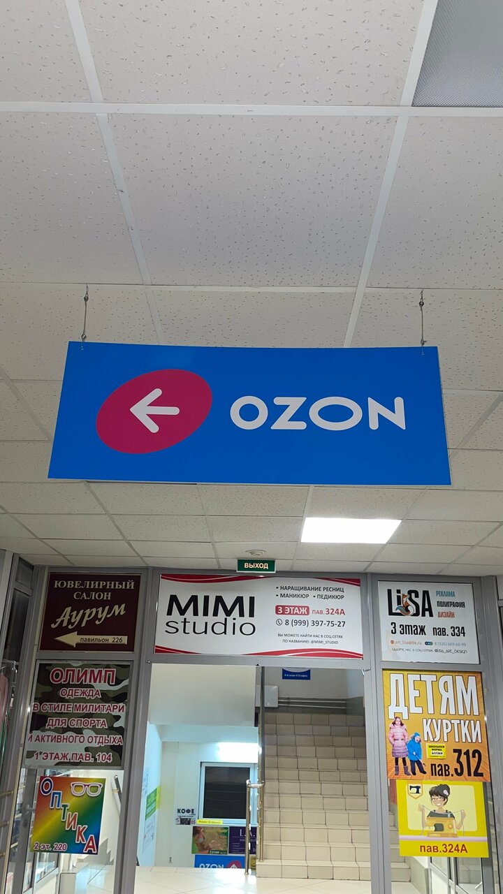 Центральный вход в ТЦ ‘Юпитер’ находится в 10 метрах от остановки. От центрального входа поверните налево и пройдите прямо по коридору до лифтов, расположенных с левой стороны коридора. Поднимитесь на 2 этаж, выйдя из лифта, поверните налево и пройдите 1 метр, слева от лестничной клетки Вы увидите вывеску Ozon.