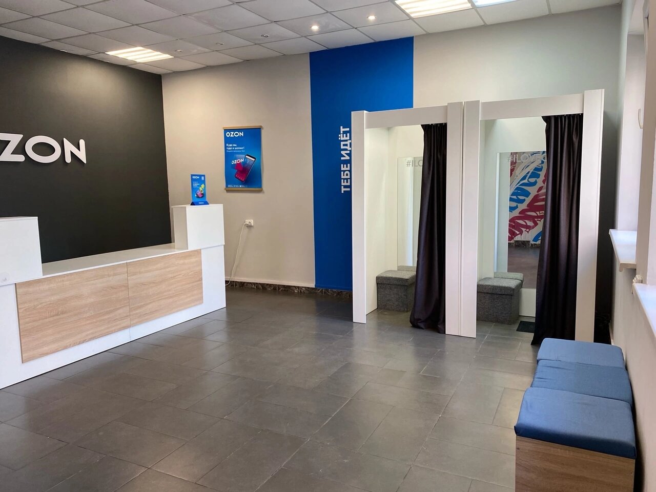 Отличный пункт выдачи. Есть парковка. Есть примерочная. Стол для проверки товара.