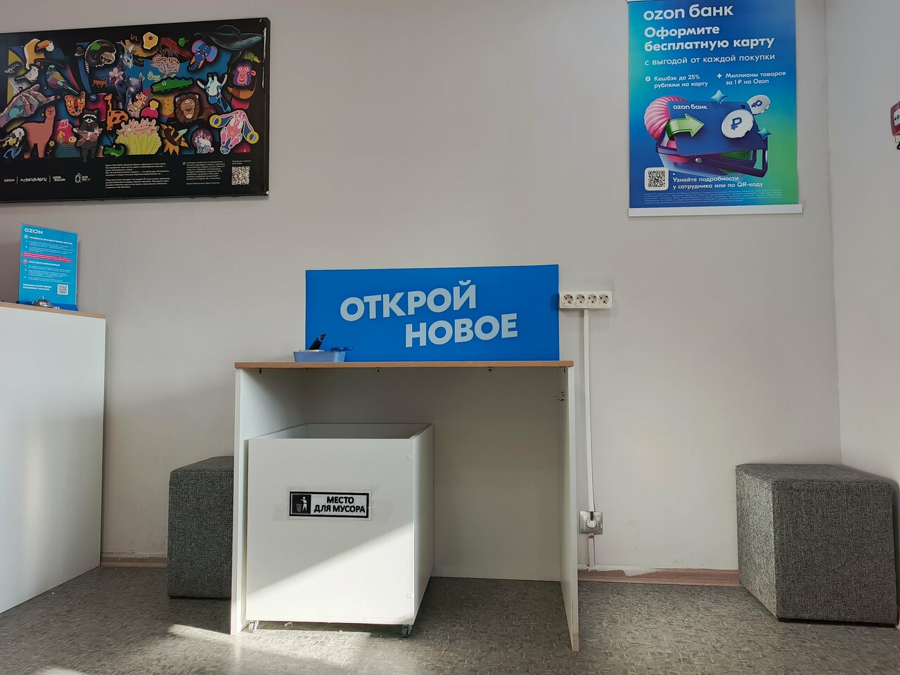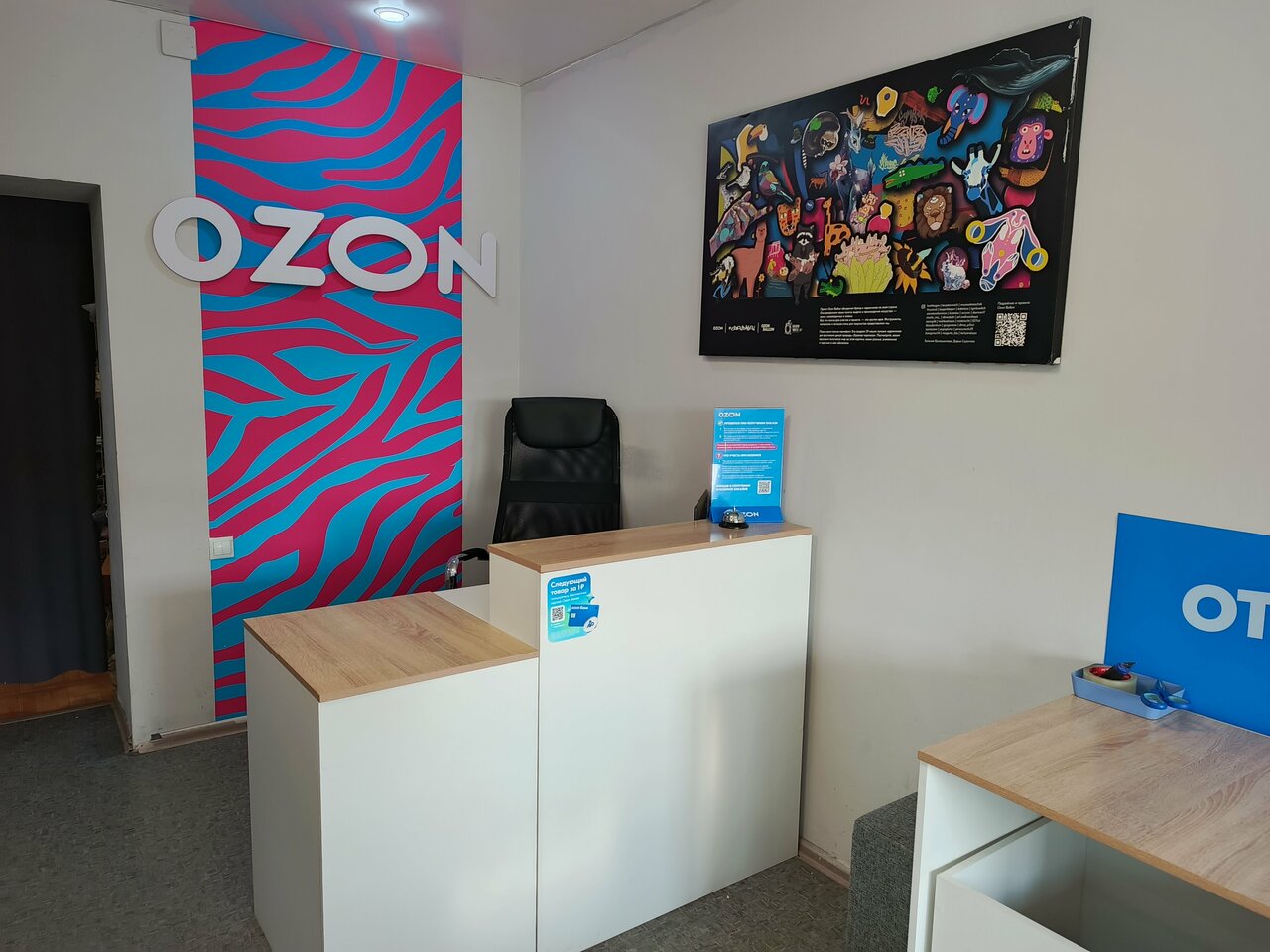 Удобное расположение)), хорошие работники и красивый пункт выдачи)). Конфетки всегда стоят на столе). Всегда хожу туда. (это единственный озон поблизости )