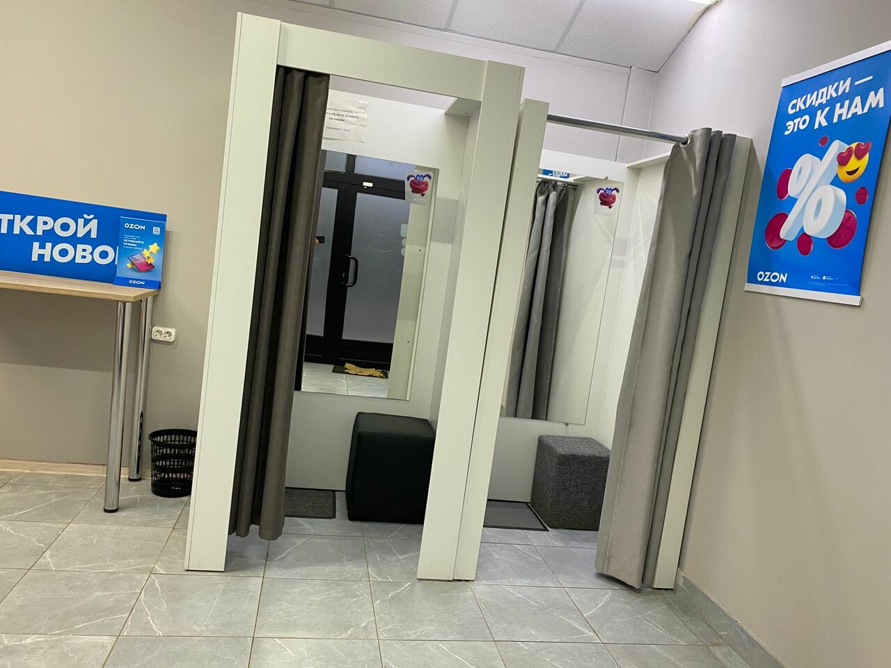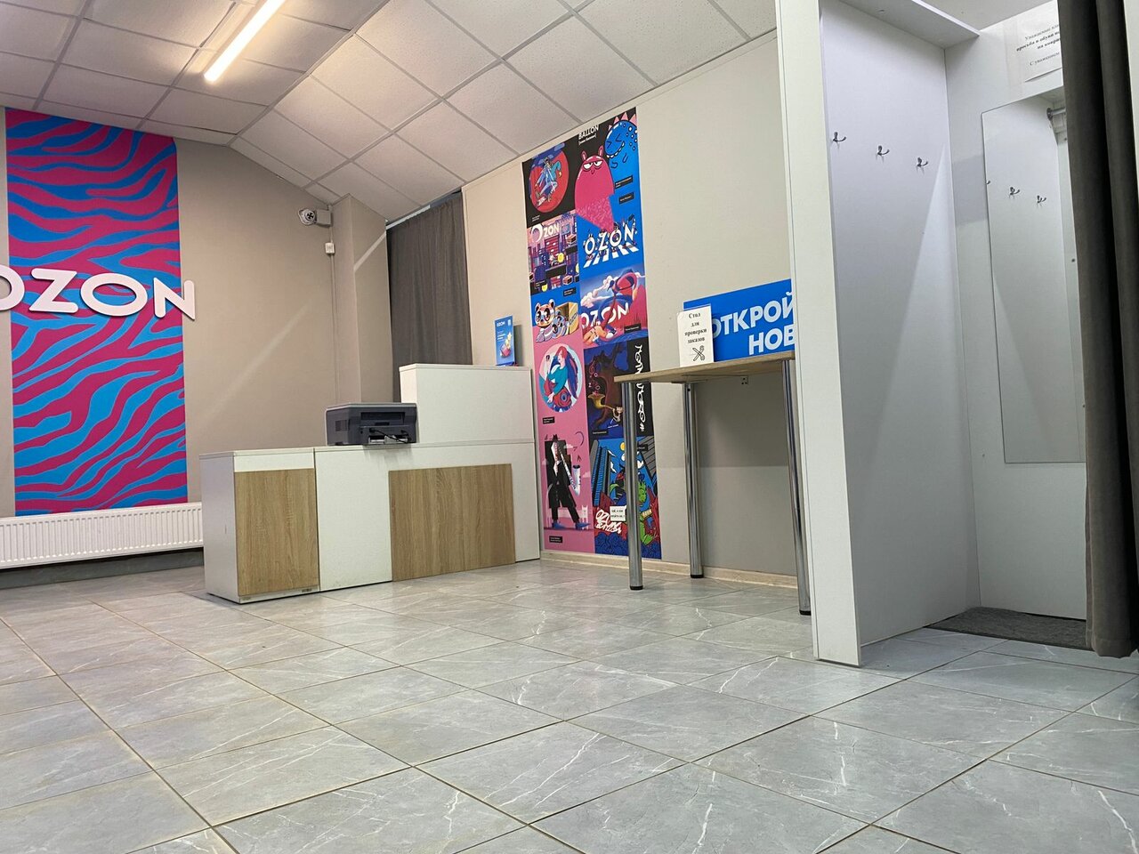 Чисто, белое безликое помещение, безлюдно. Мне всё-таки интересно, менеджеры озона имеют только функцию принять-выдать? Или в случае возникновения какой-то проблемы (например, возврата и пр.) подсказать человеку его дальнейшие действия, кроме отправки в личных кабинет.