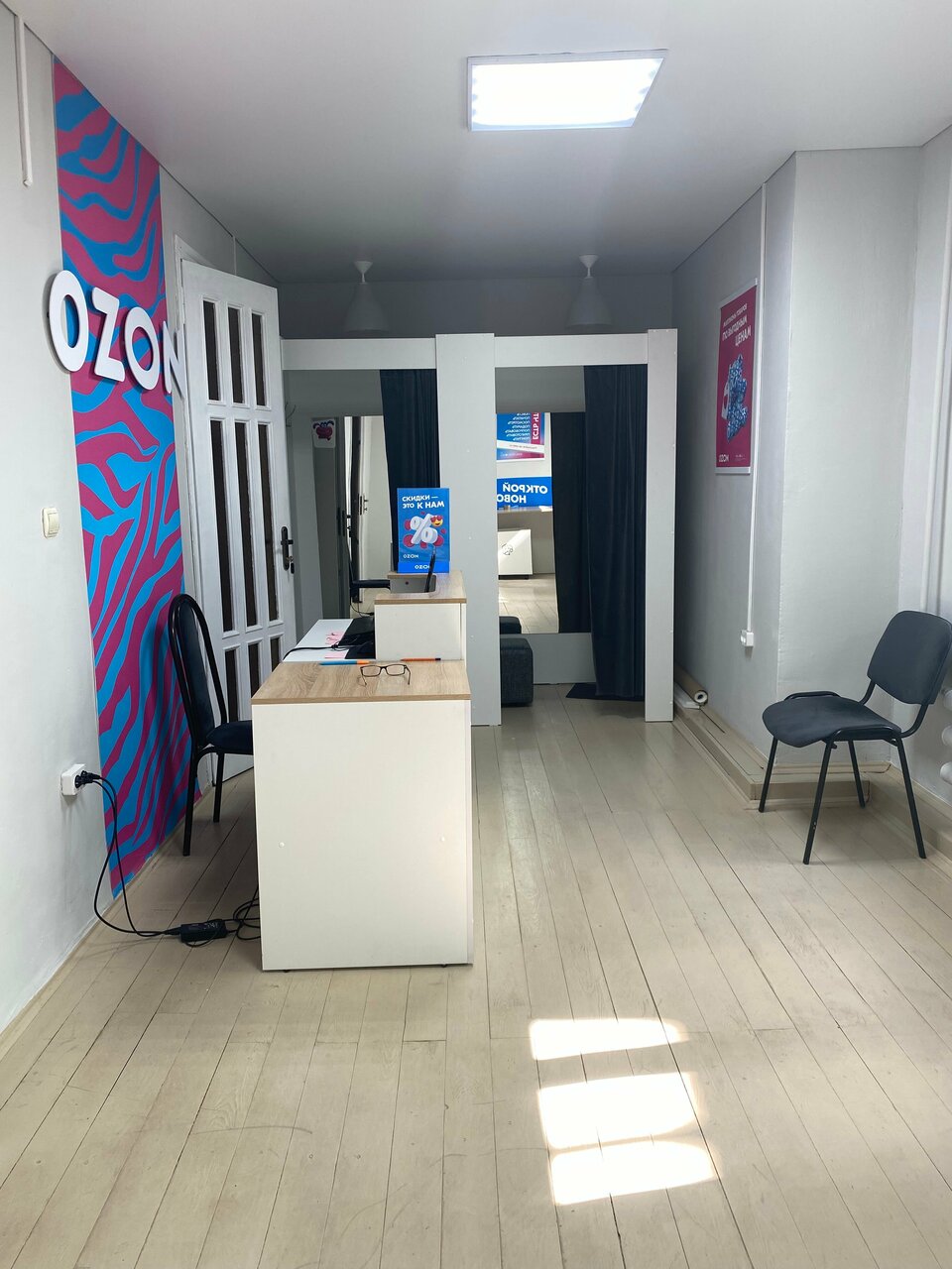 В пункте выдачи Ozon клиенты могут проверить товар под камерой, примерить его в специально оборудованной примерочной, а также получить консультацию от квалифицированных сотрудников. Здесь можно не только забрать заказ, но и оформить возврат в случае брака или при наличии гарантийных обязательств продавца.