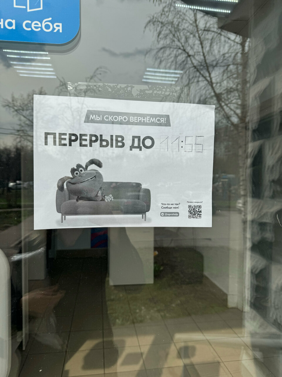 Пункт для тех, кто ловит кайф, стоя на морозе в огромной очереди час и смотря на табличку, согласно которой сотрудник ушёл на 15 минут