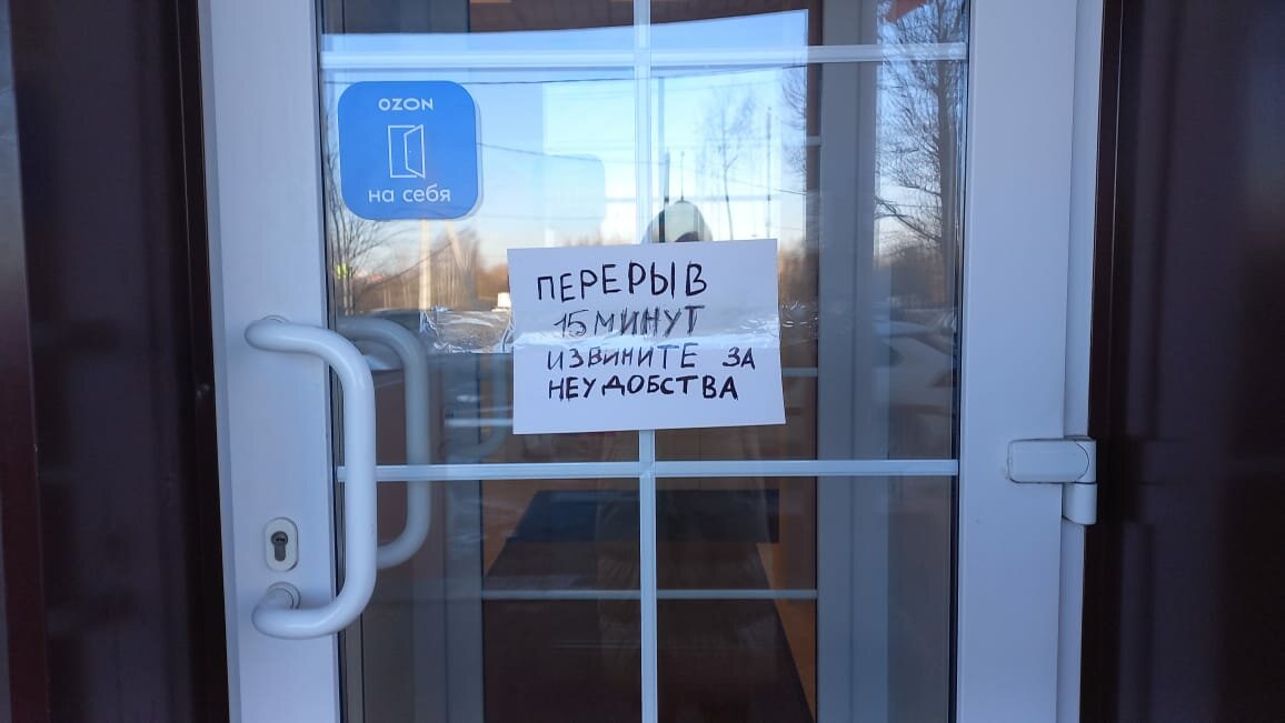 14.03.2024 пункт выдачи закрыт. Висит бумажка, что 15 минут перерыв. Прождали больше 30 минут. С 16 до 16:40. Стучали — никто не открыл и не появился. Заказ не получили. Больше сюда заказывать не буду.