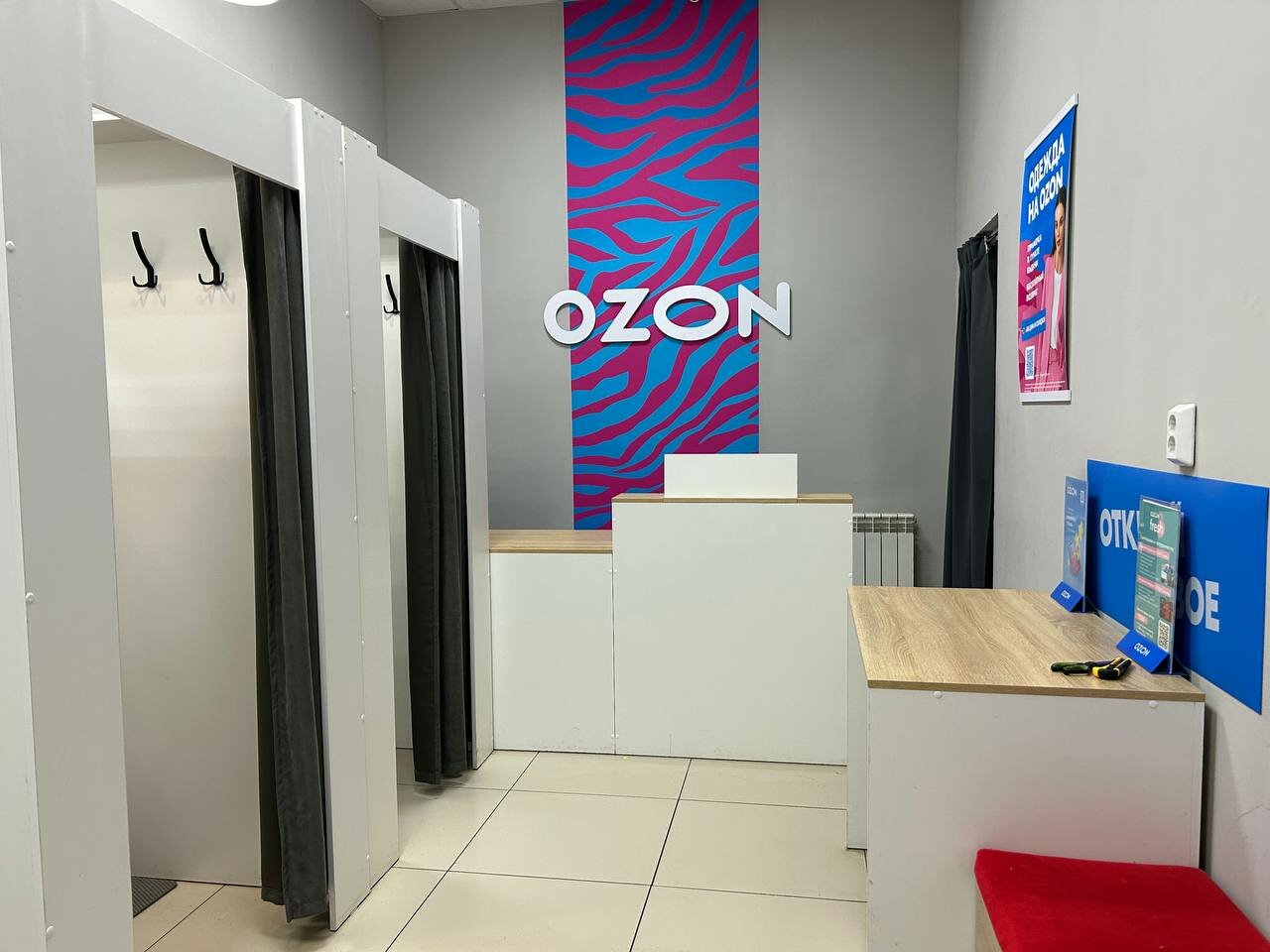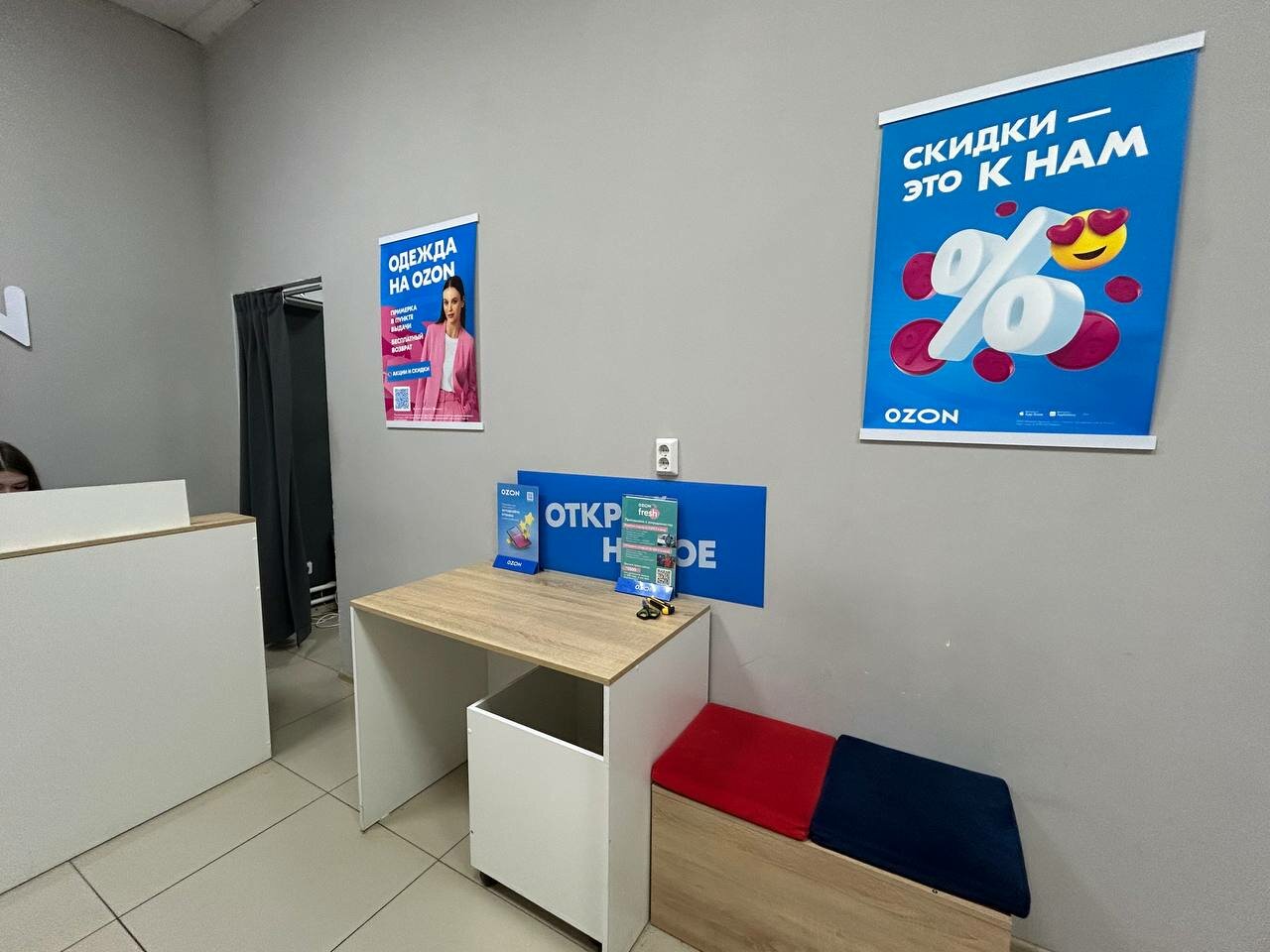 В пункте выдачи Ozon клиенты могут проверить товар под камерой, примерить его в специально оборудованной примерочной, а также получить консультацию от квалифицированных сотрудников. Здесь можно не только забрать заказ, но и оформить возврат в случае брака или при наличии гарантийных обязательств продавца.