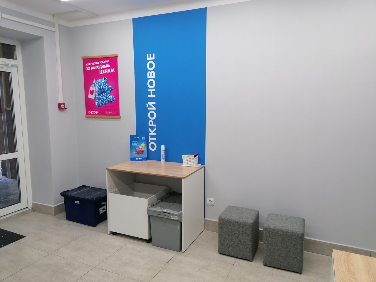 Рядом с домом. Спасибо что открылись рядом. Часто заказываем в озон. Приятный и большой пункт выдачи. Никаких коробок и всяких посторонних предметов нет, как в некоторых отделениях ВБ.