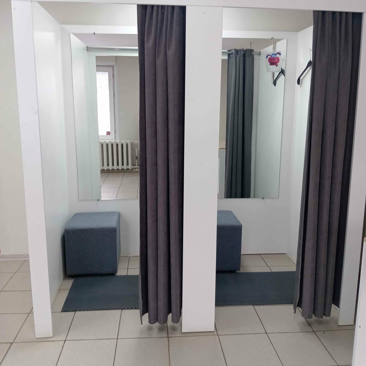 Очень медленный мальчик на выдаче, как будто потерянный в пространстве. личная обувь стоит у примерочных — не совсем то, что ожидаешь там увидеть. Маленький зал