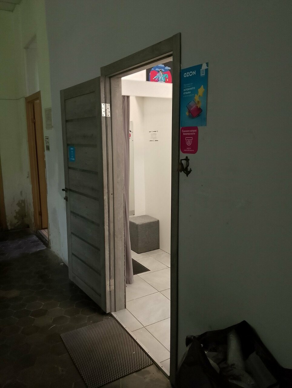 стандартный пункт выдачи Озон, ничего необычного, сверхъестественного и выдающегося, стандартно- пол, стол, склад и сотрудник