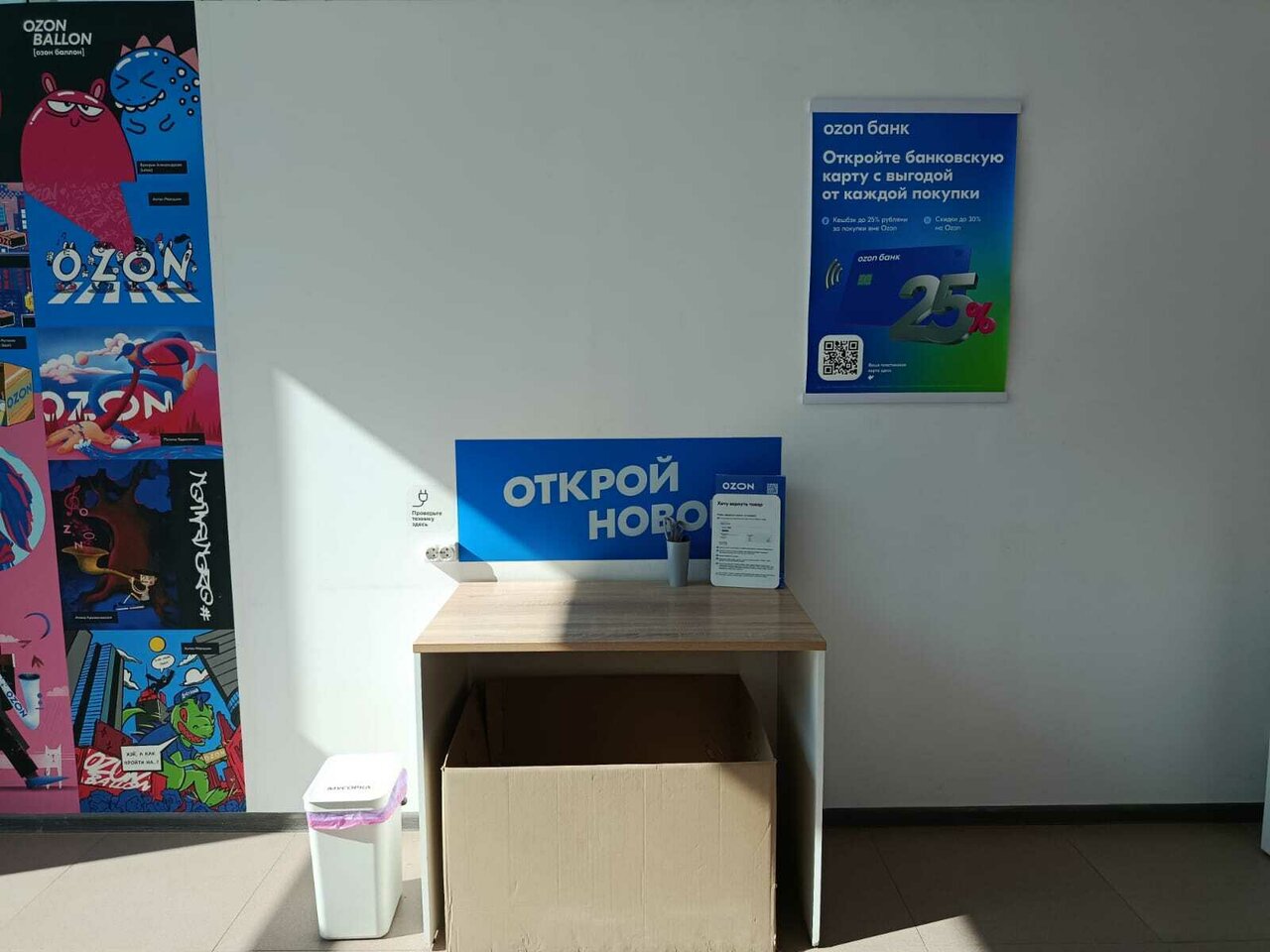 В пункте выдачи Ozon клиенты могут проверить товар под камерой, примерить покупки в специально оборудованной примерочной, а также получить консультацию от квалифицированных сотрудников. Здесь можно не только забрать заказ, но и оформить возврат в случае брака или при наличии гарантийных обязательств продавца.