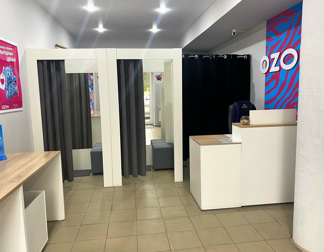 В пункте выдачи Ozon клиенты могут проверить товар под камерой, примерить его в специально оборудованной примерочной, а также получить консультацию от квалифицированных сотрудников. Здесь можно не только забрать заказ, но и оформить возврат в случае брака или при наличии гарантийных обязательств продавца.
