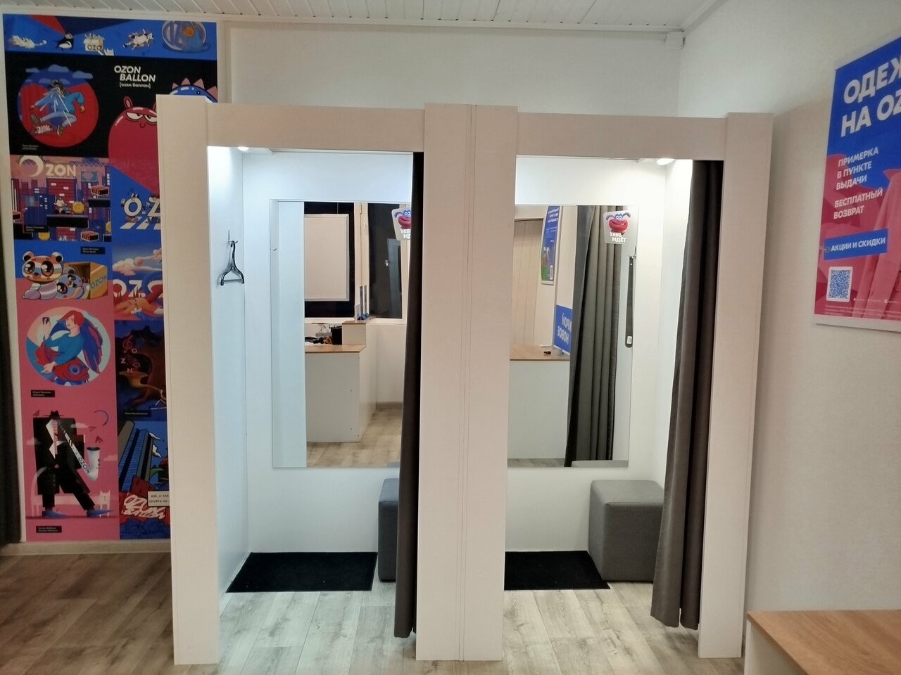 В ПВЗ Ozon покупатели могут проверить товар под камерой, примерить его в специально оборудованной примерочной, а также получить консультацию от квалифицированных сотрудников. Здесь можно не только забрать заказ, но и оформить возврат в случае брака или при наличии гарантийных обязательств продавца.