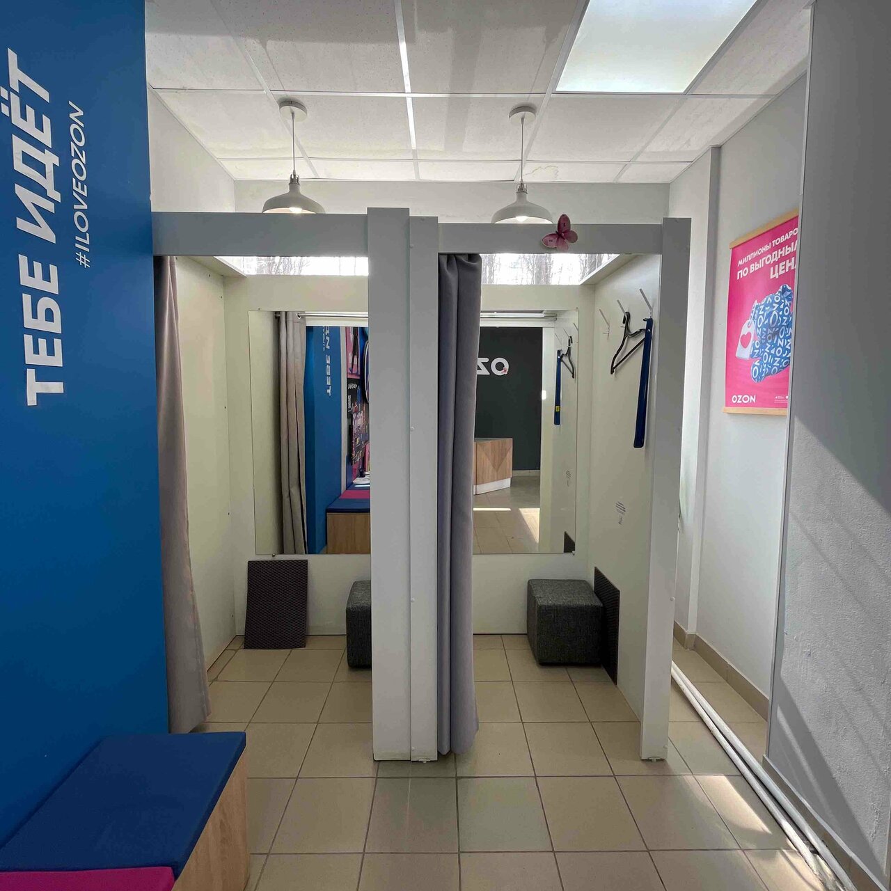 В пункте выдачи Ozon клиенты могут проверить товар под камерой, примерить его в специально оборудованной примерочной, а также получить консультацию от квалифицированных сотрудников. Здесь можно не только забрать заказ, но и оформить возврат в случае брака или при наличии гарантийных обязательств продавца.