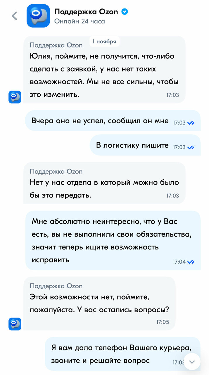 На протяжении двух месяцев писала в чат с надеждой решить проблему неработающего приложения. Но увы техподдержка озона просто никакущая, все что получила в ответ, что нет массовых сбоев значит и проблем у озона нет. А то, что куча людей в той же группе вк озона пишут о проблеме неработающего приложения это так ничего страшного. Скидывала видео с проблемой приложения, где прекрасно видно, что приложение вообще не грузит и это явно техническая ошибка приложения, но в ответ специалист чата скинула мне скрин своего личного кабинета сказав, что у нее все работает. Это все что нужно знать об этом убогом маркетплейсе.