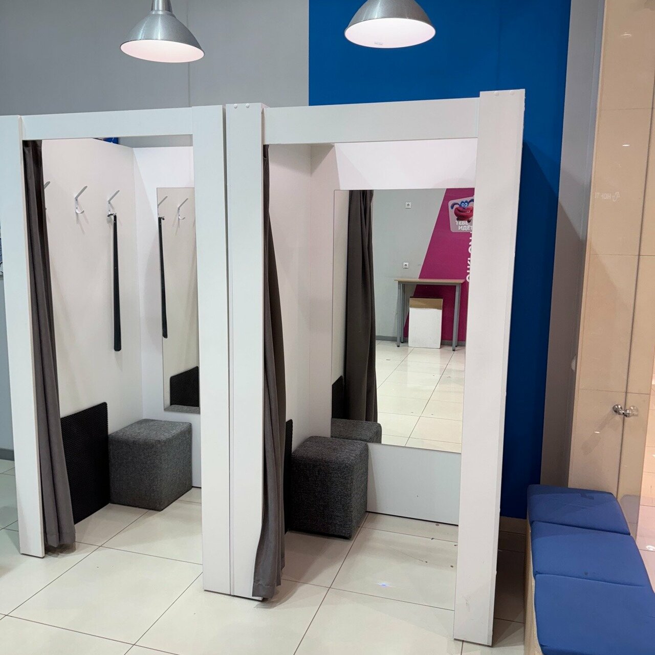 - Отсутствие возможности примерить одежду (одна кабинка, большие очереди).