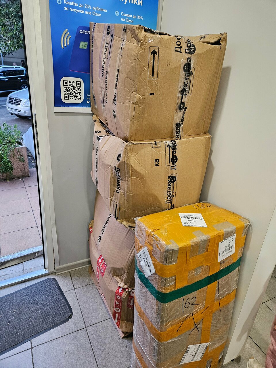 Отдают заказы озон и Яндекс. Часто там бываем, персонал вежливый. С парковкой могут быть проблемы — центр, но если быстро туда-обратно, то проблем не было ни разу