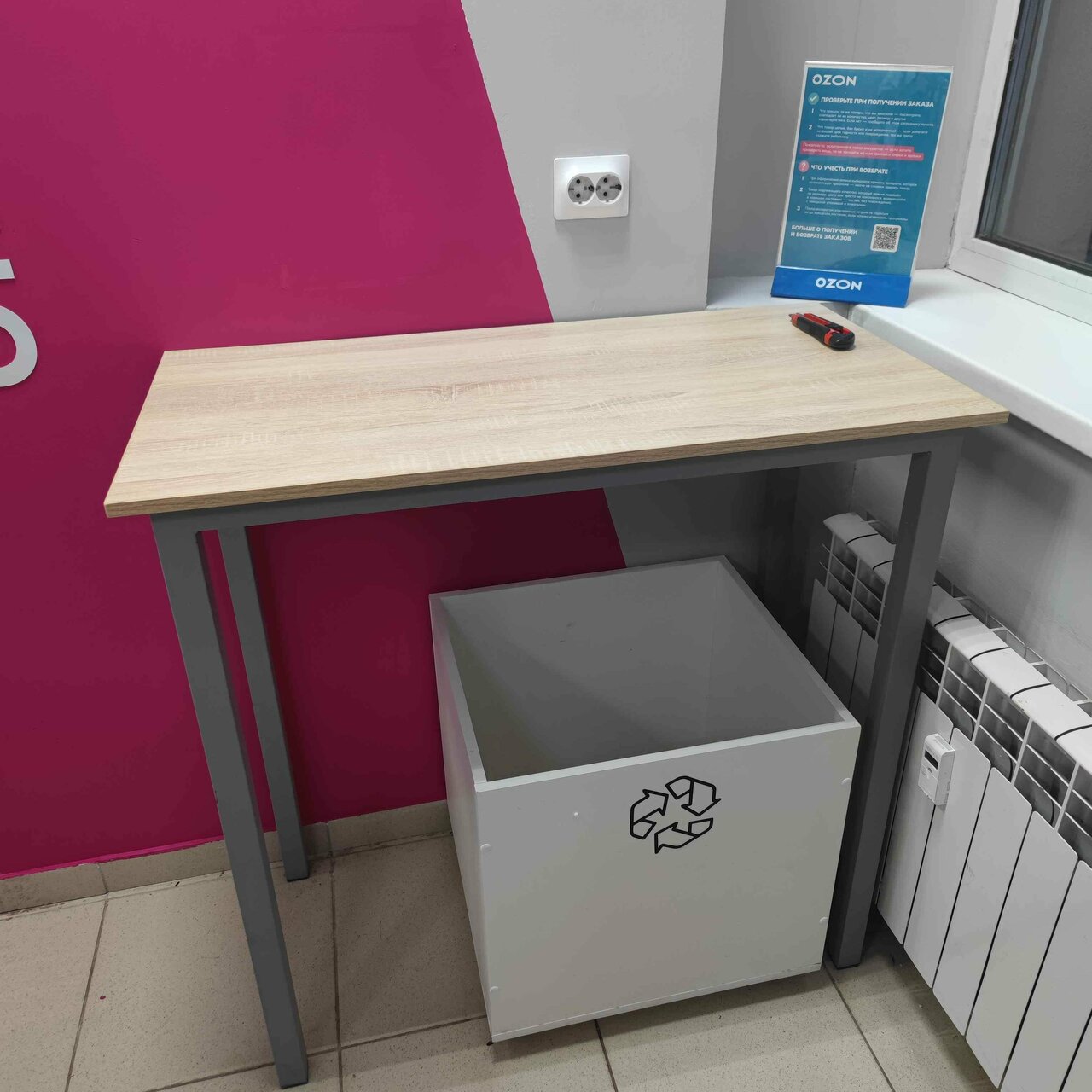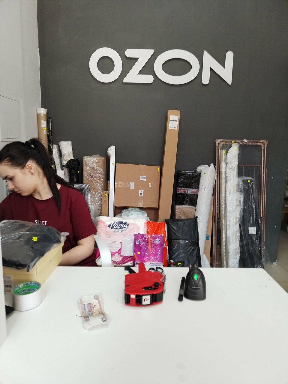 Опрятный пункт выдачи, но есть одно огромное НО… Вижу как приезжает озон машина с товаром, НО в итоге товар пропикивается на приход спустя оооооочень длинное время. Чуть ли не под закрытие товар пропикивается, пока дойдёшь до пункта выдачи, он практически перед носом закрывается. Итог: товар получаешь не в дату получения, а на следующий день, вот это вот обидно.