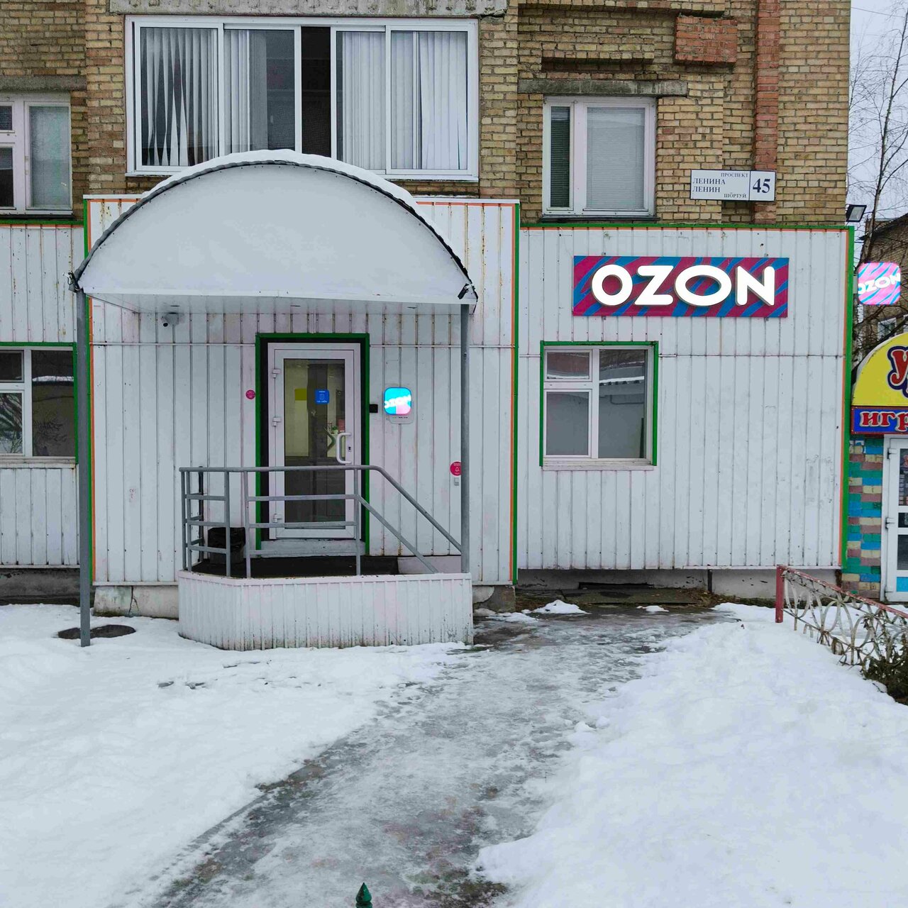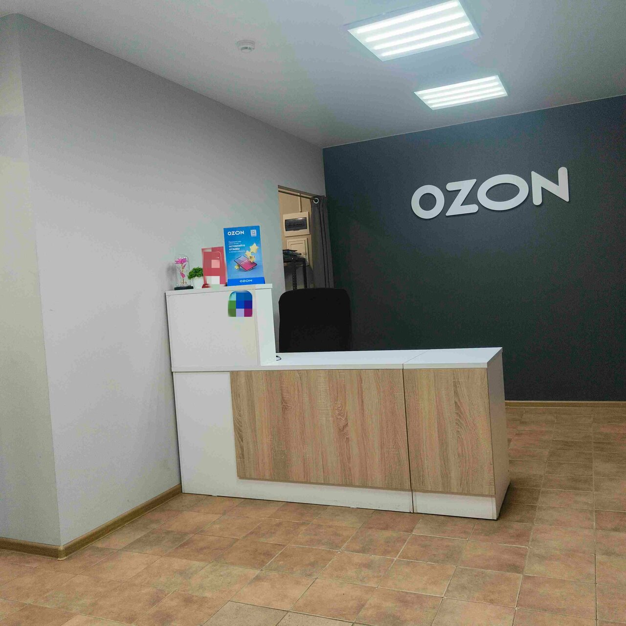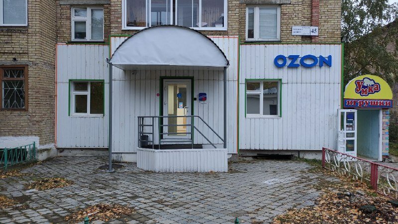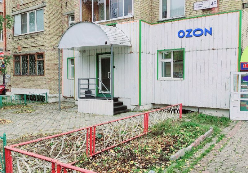 - Плохо заметная вывеска "Ozon".