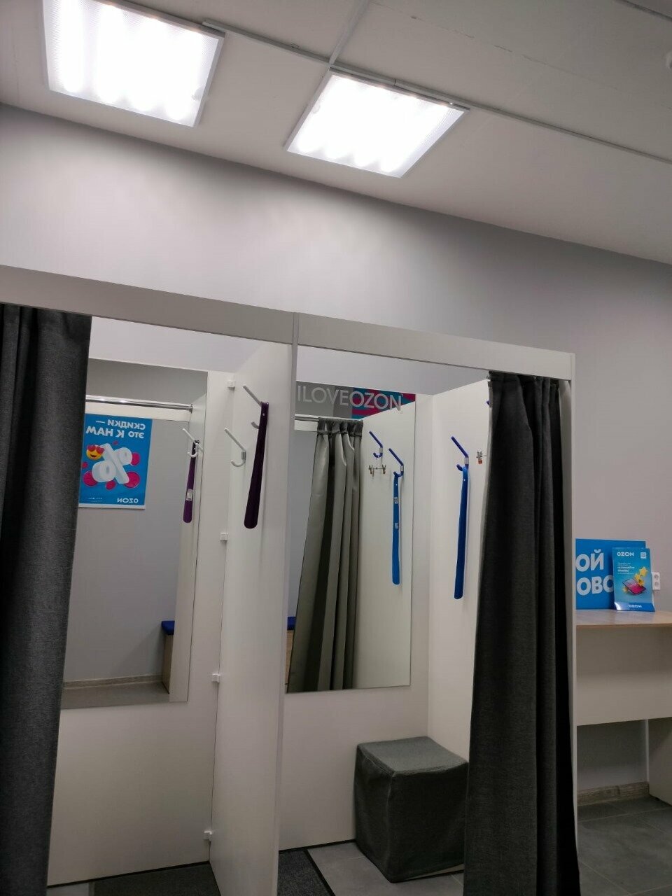 В пункте выдачи Ozon клиенты могут проверить товар под камерой, примерить его в специально оборудованной примерочной, а также получить консультацию от квалифицированных сотрудников. Здесь можно не только забрать заказ, но и оформить возврат в случае брака или при наличии гарантийных обязательств продавца.