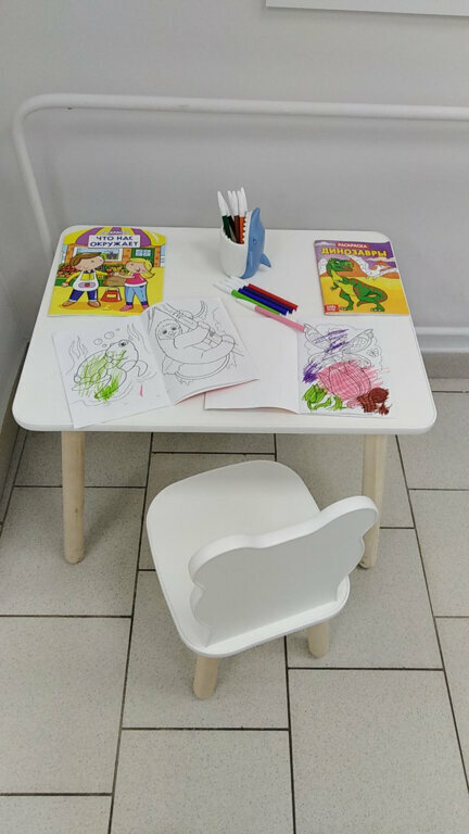 - Детский столик с раскрасками и развивающими играми.