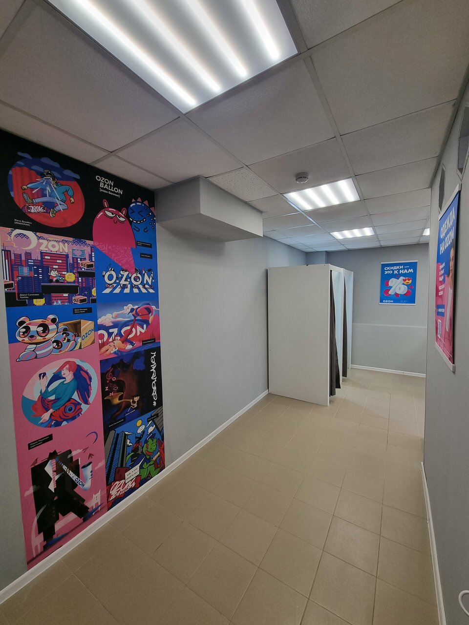 Внутри всё хорошо, чисто. Но лично мне мозолит глаза вывеска Вайлдберриз и Озон вместе, их скрестили но они не сочетаются.