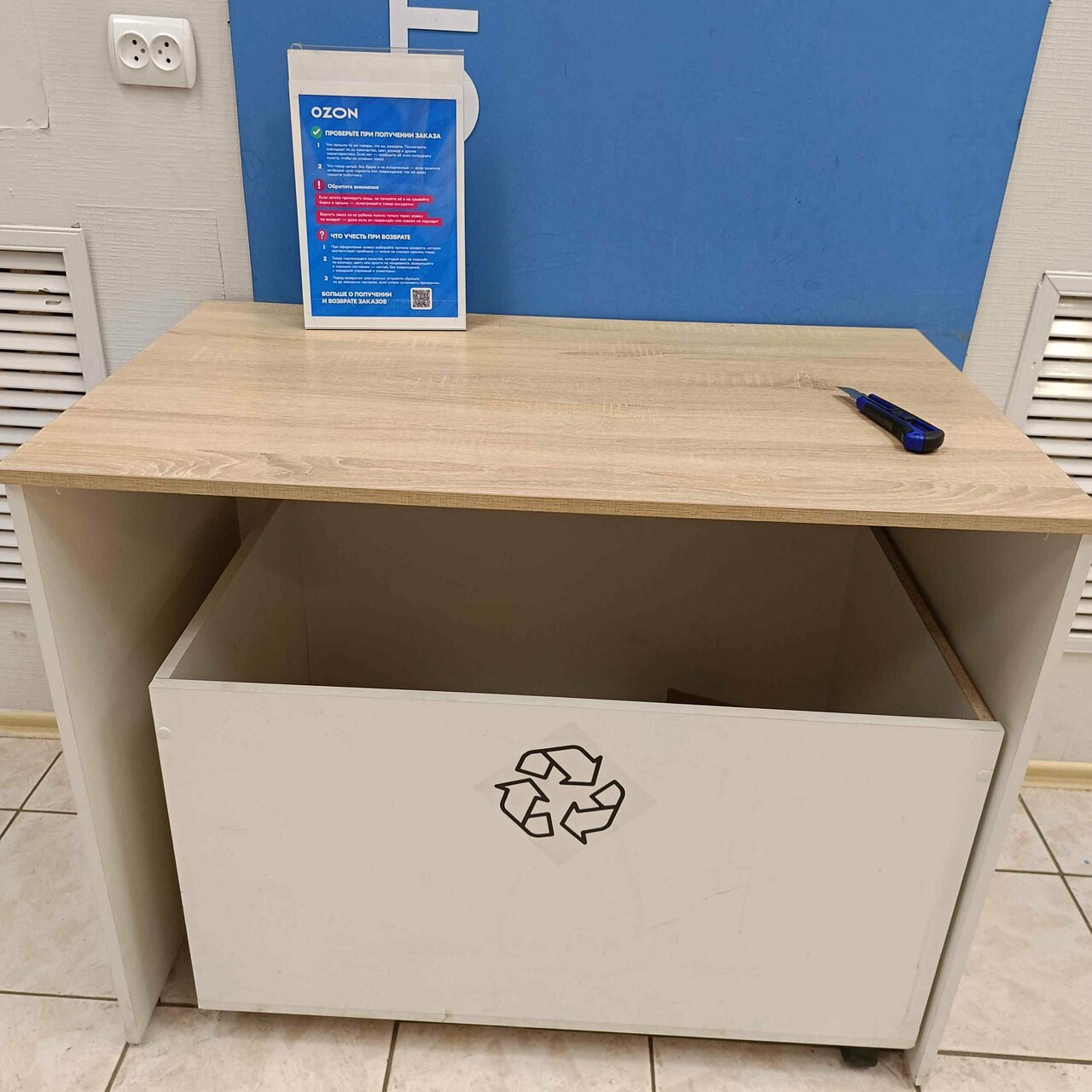В пункте выдачи Ozon клиенты могут проверить товар под камерой, примерить его в специально оборудованной примерочной, а также получить консультацию от квалифицированных сотрудников. Здесь можно не только забрать заказ, но и оформить возврат в случае брака или при наличии гарантийных обязательств продавца.