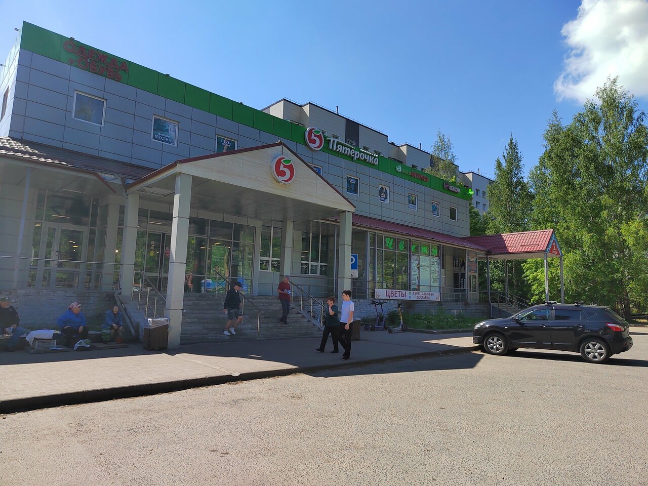 Большая пятёрочка.хороший ассортимент Много касс самообслуживания. Парковка. Кофейный автомат со столиком. Есть аптека и озон