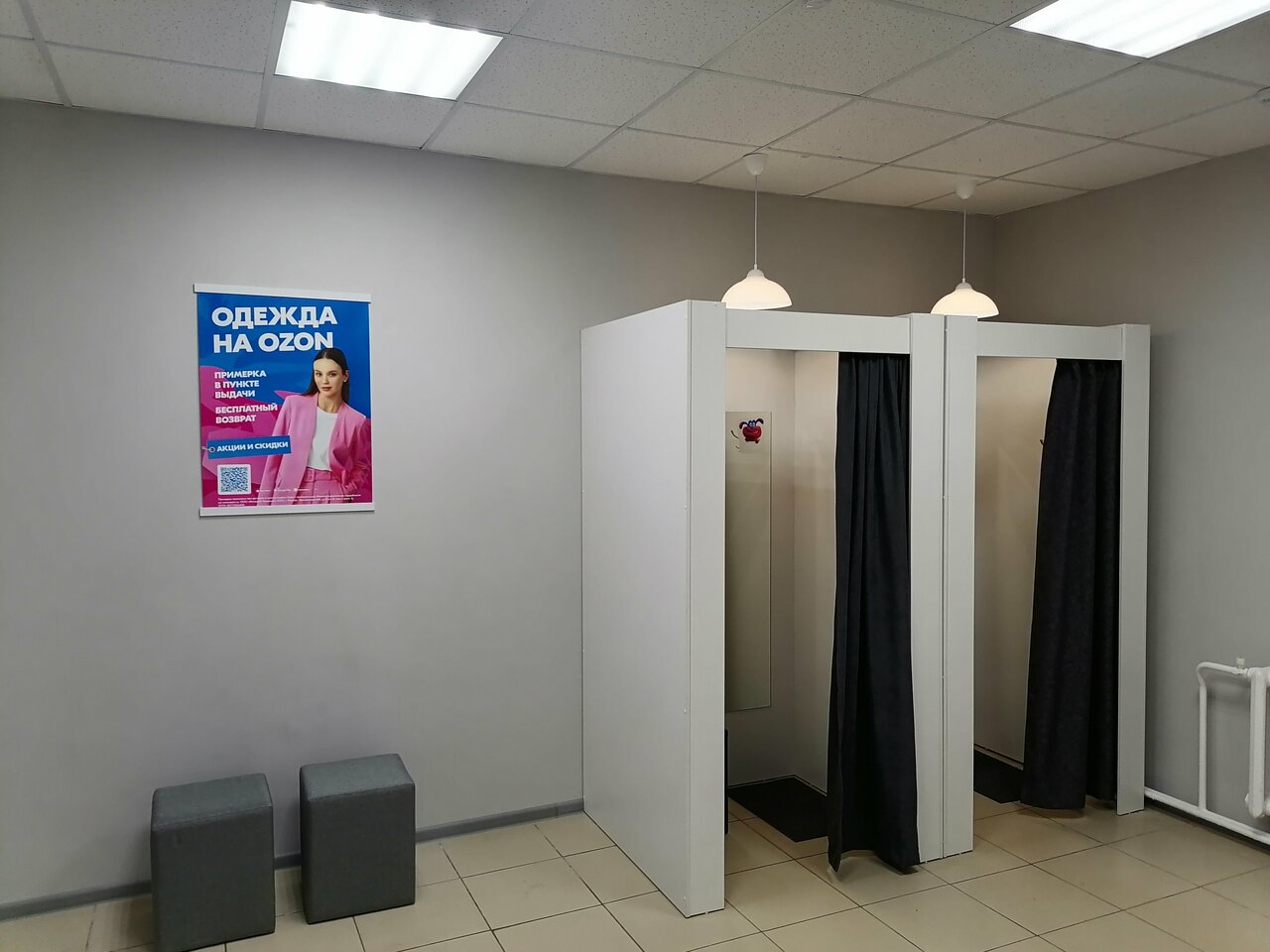 В пункте выдачи Ozon покупатели могут проверить товар под камерой, примерить его в специально оборудованной примерочной, а также получить консультацию от квалифицированных сотрудников. Здесь можно не только забрать заказ, но и оформить возврат в случае брака или при наличии гарантийных обязательств продавца.