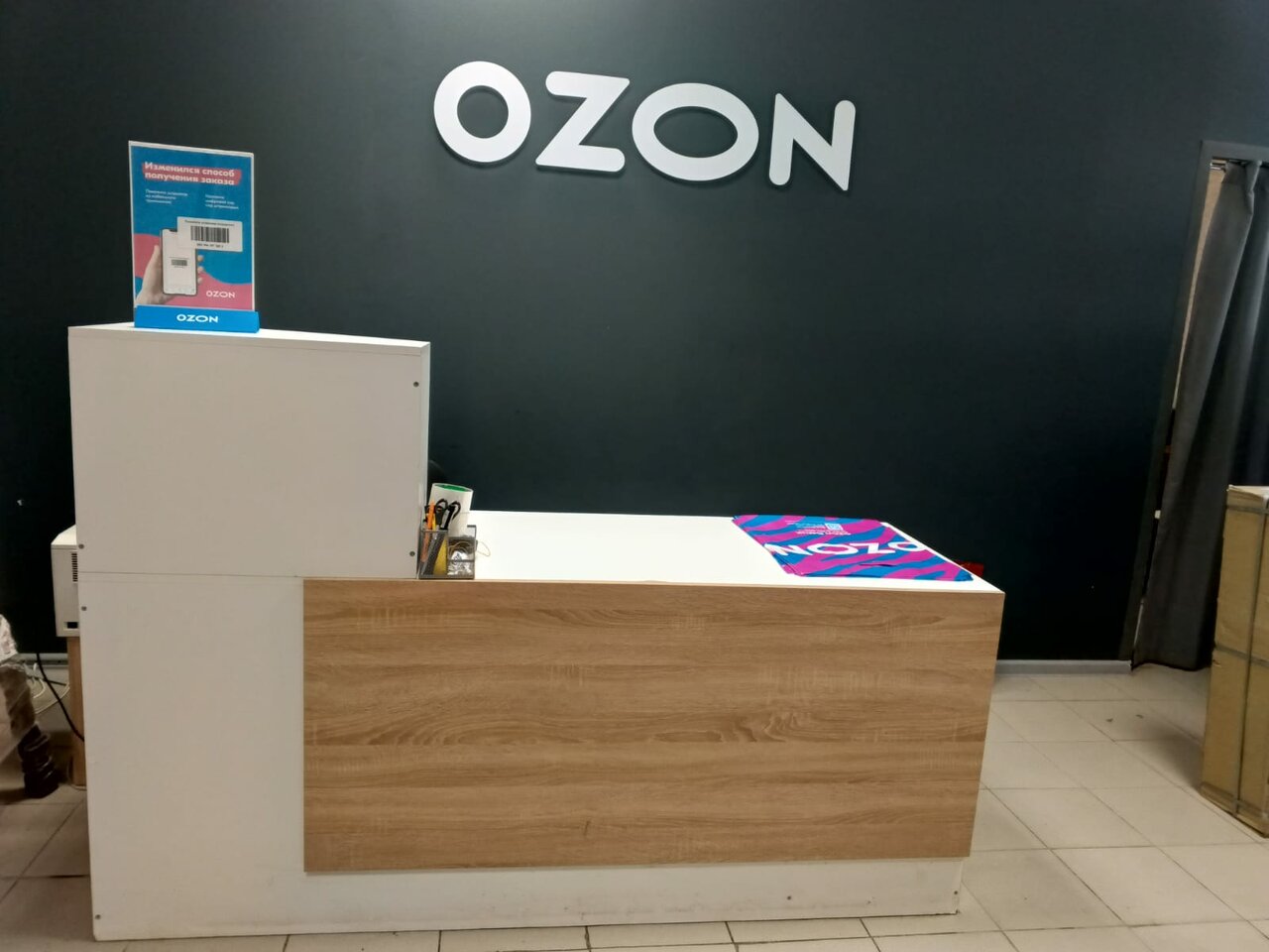 Данный пункт озон удобно расположен, имеется парковочные места. Внутри помещения чисто. Сотрудники вежливые.
